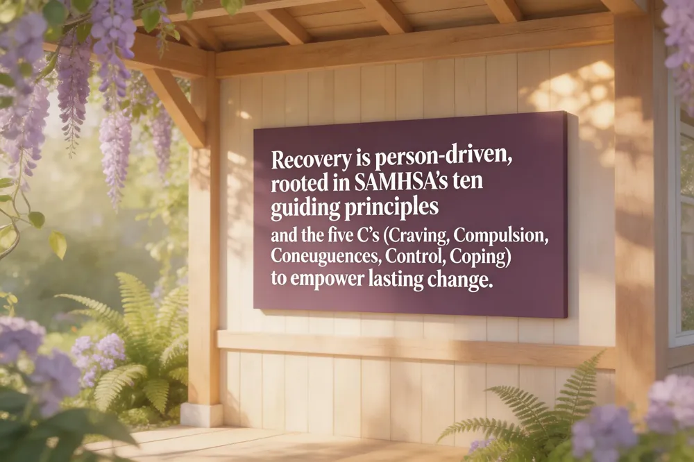 Compassionate addiction recovery is rooted in SAMHSA’s ten guiding principles, which frame recovery as a hopeful, person‑driven journey that honors self‑direction, cultural identity, and the whole‑person’s health. A holistic, trauma‑informed lens integrates medical care, mental‑health support, housing, employment and community connection, while peer support and nurturing relationships supply belonging and accountability. Parallel to these principles, the five C’s of addiction—Craving, Compulsion, Consequences, Control, and Coping—highlight the internal and external forces that sustain substance use. Recognizing craving and compulsion fuels motivation to address the painful consequences of use; regaining control involves interrupting automatic patterns, and building healthy coping skills replaces reliance on substances. Together, the SAMHSA framework and the five C’s underscore that recovery is a lifelong, individualized process, driven by hope, empowerment, and compassionate, evidence‑based care.
