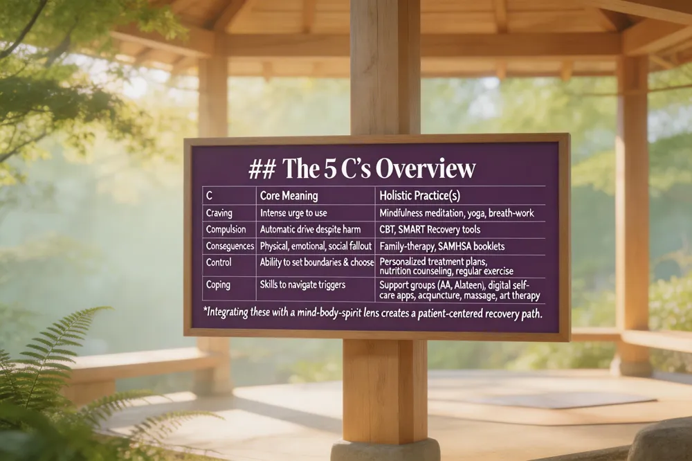 When a person first reaches out for help—whether by calling SAMHSA’s 24/7 helpline (1‑800‑662‑HELP) or texting HELP4U for local resources—the recovery journey begins with understanding the the C’s of recovery. Craving is the intense urge to use; mindfulness meditation, yoga, and breath‑work help observe the urge without acting on it. Compulsion describes the automatic drive to seek substances despite negative outcomes; recognizing this pattern through cognitive‑behavioral therapy (CBT) or SMART Recovery tools breaks the habit loop. Consequences encompass the physical, emotional, and social fallout of use; family‑therapy guides and SAMHSA booklets illuminate these impacts, turning pain into motivation. Control is the ability to set boundaries and make conscious choices—supported by personalized treatment plans, nutritional counseling, and regular exercise that restore physical balance. Coping is everything that equips the individual to navigate triggers: support groups (AA, Alateen), digital self‑care apps, and holistic therapies such as acupuncture, massage, and art therapy.