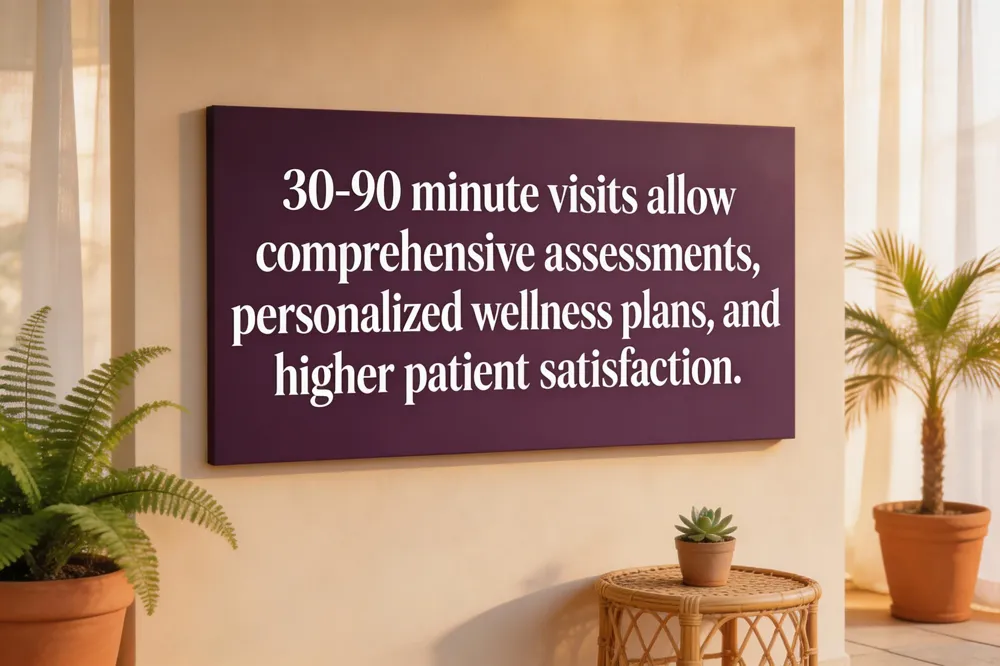 Concierge practices typically schedule appointments that last 30‑90 minutes, far longer than the 10‑15‑minute slots common in fee‑for‑service offices. This extra time lets physicians conduct comprehensive health assessments—reviewing medical history, medications, family risks, and lifestyle factors—so they can craft a personalized wellness plan that blends evidence‑based medicine with integrative strategies such as nutrition counseling, stress‑management, and fitness coaching. Patients benefit from a deeper doctor‑patient relationship, which research links to higher satisfaction, better adherence, and fewer hospitalizations.