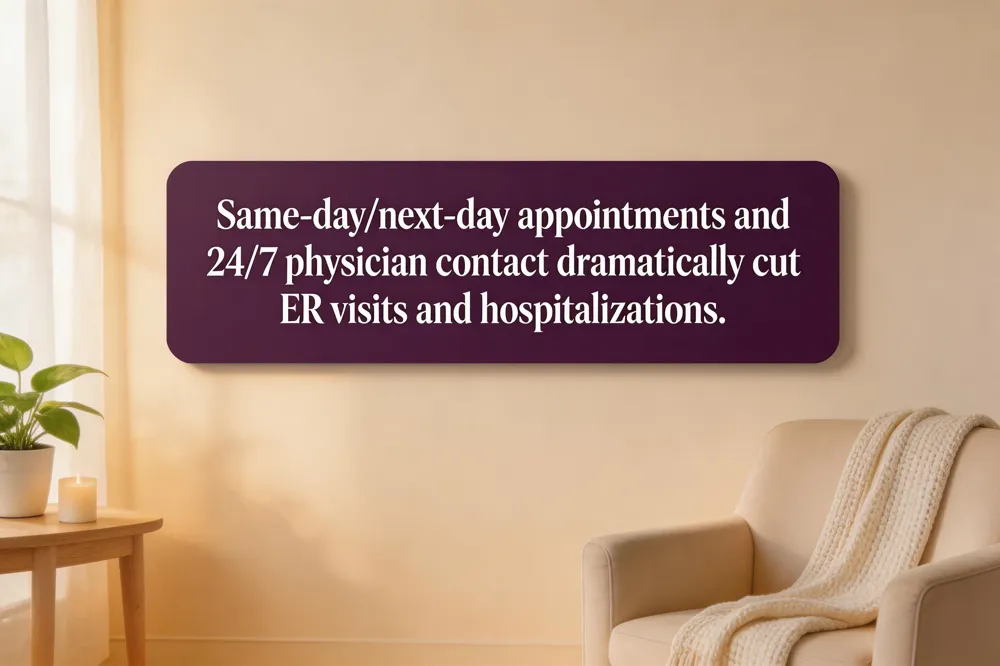 Concierge medicine eliminates the long waiting lists of traditional primary care by guaranteeing same‑day or next‑day appointments for urgent concerns and routine follow‑ups. Patients enjoy 24/7 direct physician contact through phone, text, email or secure portal, which means a health question can be answered within minutes instead of days. This rapid access dramatically cuts unnecessary emergency‑room visits; studies show that concierge patients have 40% fewer hospitalizations and lower overall health costs because issues are addressed early.