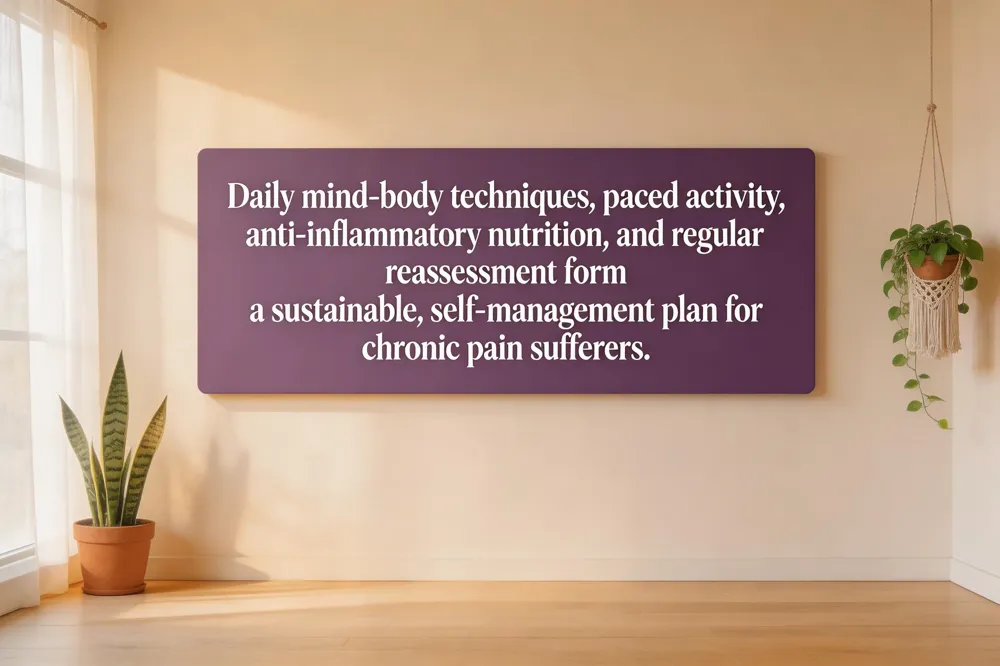 Start with a thorough medical evaluation to identify the pain’s origin. Combine low‑impact aerobic exercise (walking, swimming) with strength training to improve musculoskeletal support. Adopt an anti‑inflammatory diet rich in omega‑3s, fruits, vegetables, and whole grains, and maintain healthy sleep hygiene. Complement physical therapy with evidence‑based mind‑body modalities—mindfulness, CBT, yoga—to address the psychological component. When needed, discuss appropriate non‑opioid medications and targeted interventions (e.g., trigger‑point injections) with a multidisciplinary team.