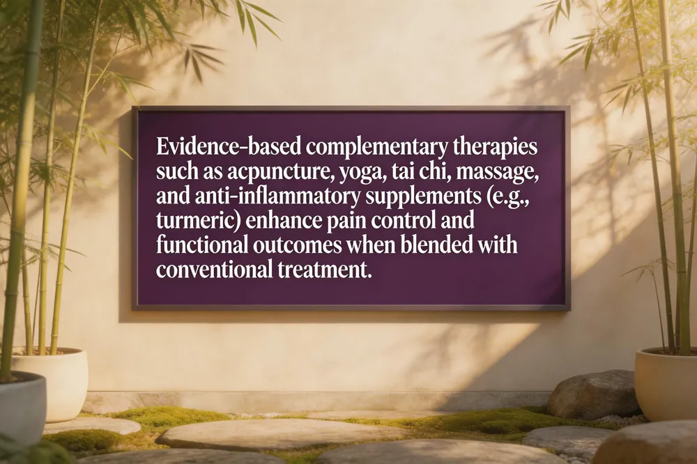Recent studies consistently show that pairing conventional therapies—such as NSAIDs, physical therapy, and judicious opioid use—with evidence‑based complementary modalities yields superior outcomes. A 2022 systematic review reported a 30 % greater reduction in pain intensity when acupuncture, mindfulness‑based stress reduction, and tailored exercise were added to standard care, while meta‑analyses demonstrate up to a 25 % drop in opioid requirements. These data empower patients to co‑design personalized pain plans that reflect lifestyle, stress levels, and comorbidities, fostering higher adherence and lasting relief. Clinicians are urged to adopt a biopsychosocial framework, screen for appropriate integrative options, and collaborate with licensed acupuncture therapists, yoga instructors, and nutritionists. Likewise, patients should openly discuss goals, preferences, and barriers with their care team, tracking progress through pain diaries or mobile apps. Together, this partnership accelerates the shift from symptom‑focused prescriptions to holistic, patient‑centered management. Embracing this integrated vision promises healthier communities and reduced healthcare costs nationwide for all.