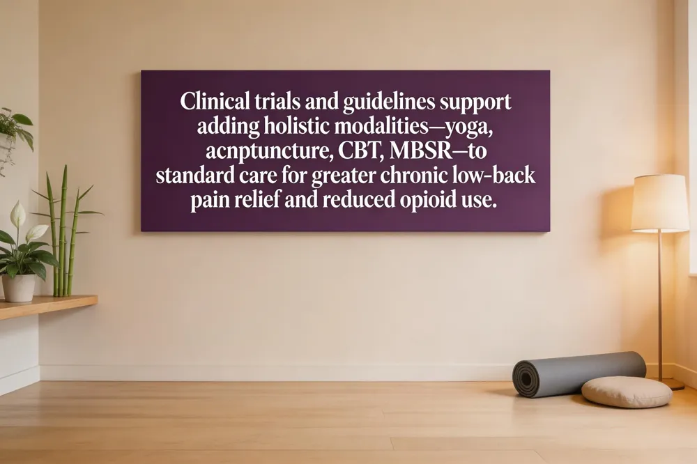 Clinical trials consistently show that adding holistic modalities to standard care amplifies pain relief. A randomized study of an integrative program—physical therapy, CBT, and nutritional counseling—produced a 30 % larger drop in chronic lower‑back pain intensity than conventional therapy alone. Systematic reviews (e.g., Journal of Pain Research 2022) confirm similar gains across yoga, acupuncture, and mindfulness‑based stress reduction (MBSR).