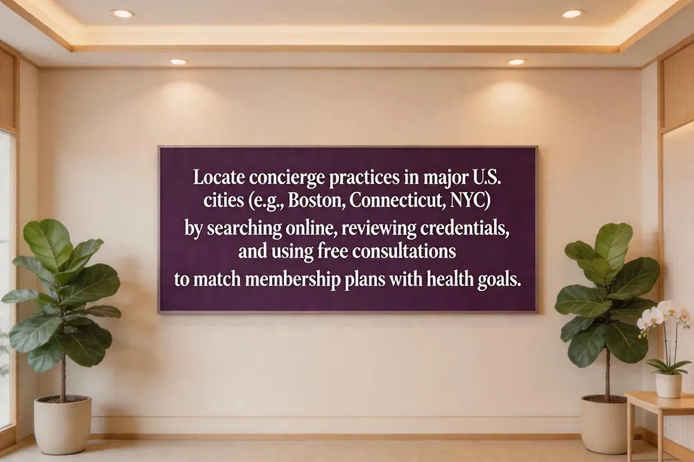 How to locate a suitable practice: Search online for “concierge medicine” plus your city or zip code, review physician credentials, patient reviews, and available amenities, and many practices offer a free consultation or quick‑match quiz to align membership plans with your health goals and budget.