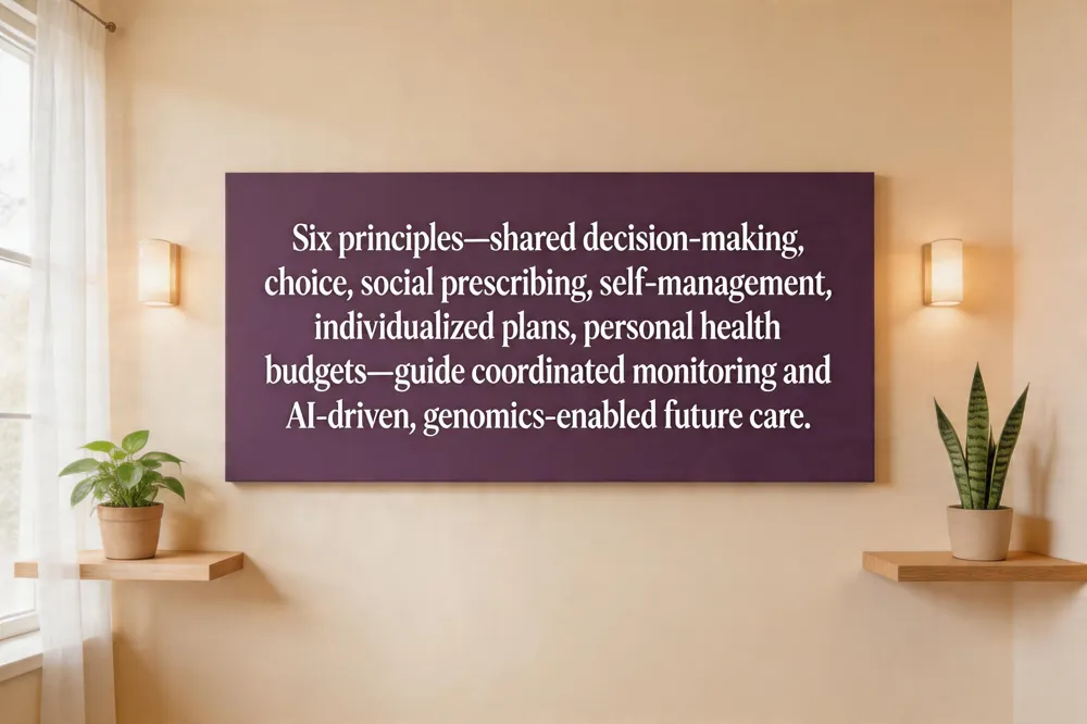 Six core principles guide personalized care: shared decision‑making, enabling choice, social prescribing, supported self‑management, individualized care plans, and personal health budgets. Health monitoring gathers vital signs (blood pressure, heart rate, temperature, BMI), labs (cholesterol, glucose, vitamins), sensory (vision, hearing, spirometry) and mental‑health stress assessments to detect early issues. Proactive monitoring continuously analyzes this data, often via wearables and remote‑monitoring platforms, to flag deviations before symptoms appear, permitting timely interventions. Concierge primary care is a membership model where patients pay an annual fee for direct 24/7 physician access, longer visits, and coordinated wellness services, while insurance covers traditional procedures. Critics cite high fees and limited panels that may widen disparities, creating a two‑tier system. Future care will blend AI‑driven analytics, precision genomics, and integrated digital tools to refine these proactive, personalized pathways.