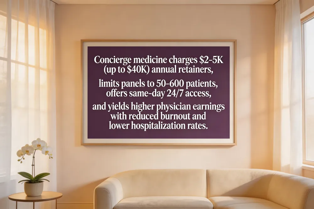 Why doctors charge a concierge fee: The fee finances smaller panels, longer visits, same‑day scheduling, and coordinated, whole‑person care that traditional fee‑for‑service reimbursement cannot sustain.