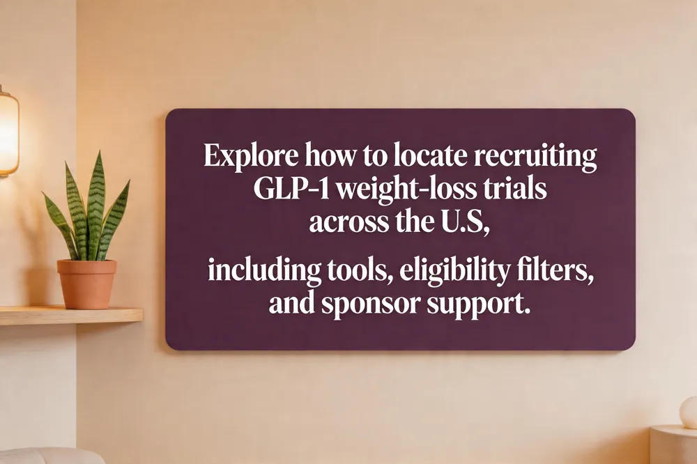 To locate GLP‑1 trials near you, use ClinicalTrials.gov’s Advanced Search, type your ZIP code or city, and set a radius (e.g., 25 mi). Apply filters for “Recruiting,” the relevant age range, and the specific drug (semaglutide, dulaglutide, tirzepatide). TrialX also lets you map semaglutide studies on a state‑level map.