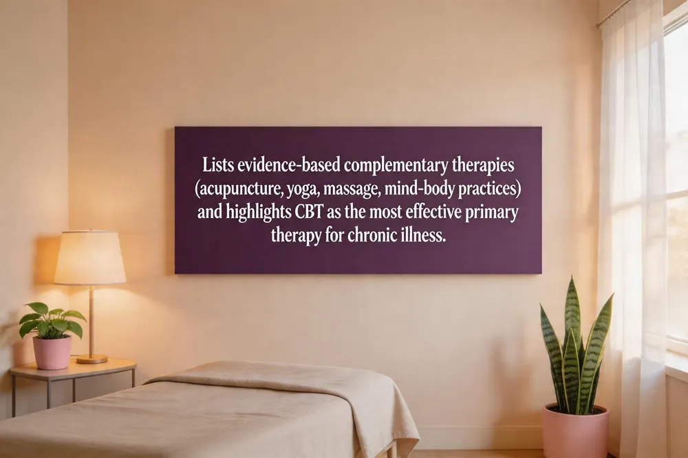What is the best therapy for chronic illness? – Cognitive‑behavioral therapy (CBT) is widely regarded as the most effective primary therapy, addressing negative thoughts and emotional distress. When combined with mindfulness, ACT, lifestyle changes, and personalized nutrition, CBT offers a comprehensive, patient‑centered strategy.
