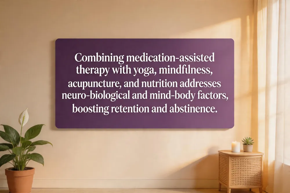 The integrative approach to addiction blends proven medical treatments—such as medication‑assisted therapy, medically supervised detox, and evidence‑based counseling—with holistic modalities that nurture the whole person. By combining medication‑assisted therapy with practices like yoga, mindfulness meditation, acupuncture, and nutrition counseling, clinicians address both the neuro‑biological and of substance use and the mind‑body factors that sustain recovery. Personalized nutrition plans supply essential vitamins and minerals that support brain healing, while movement‑based therapies (yoga, tai chi, breathwork) lower cortisol and boost oxytocin, reducing stress‑related cravings. Integrative models also prioritize screening and treatment of co‑occurring mental‑health conditions such as depression, anxiety, and PTSD, using trauma‑informed counseling and peer support to improve self‑efficacy. A growing body of research—systematic reviews in Addiction and Journal of Substance Abuse Treatment—shows that blended treatment plans increase therapeutic alliance, raise retention rates by 15‑30 %, and improve abstinence outcomes by up to 40 % across diverse populations. The result is a patient‑centered, compassionate care pathway that empowers individuals to build sustainable, whole‑person recovery.