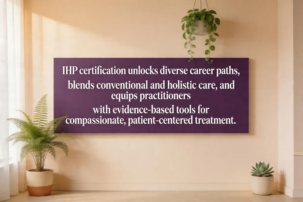 Core competencies include motivational interviewing, trauma‑informed communication, and integrative modalities like yoga, mindfulness, acupuncture, and nutrition counseling, all of which have been linked to higher patient engagement and lower relapse rates. Business tools and practice resources—such as ready‑made treatment plans, marketing templates, and telehealth platforms—help graduates launch their own practice or provide freelance consulting. The credential enjoys global recognition, facilitating professional networking and partnerships with physicians, psychologists, and community organizations. In short, the IHP certification equips you to deliver compassionate, evidence‑based care that empowers clients to heal themselves and achieve lasting well‑being.