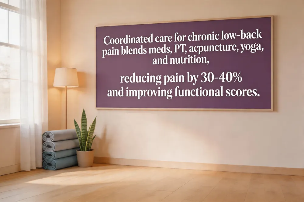 Outcomes on pain reduction and functional improvement Studies show that such integrative programs can cut perceived pain by 30‑40% and increase functional scores (e.g., WHOQOL‑BREF) by 10‑12 points within six months, while also reducing dropout rates and encouraging long‑term adherence to healthy habits.