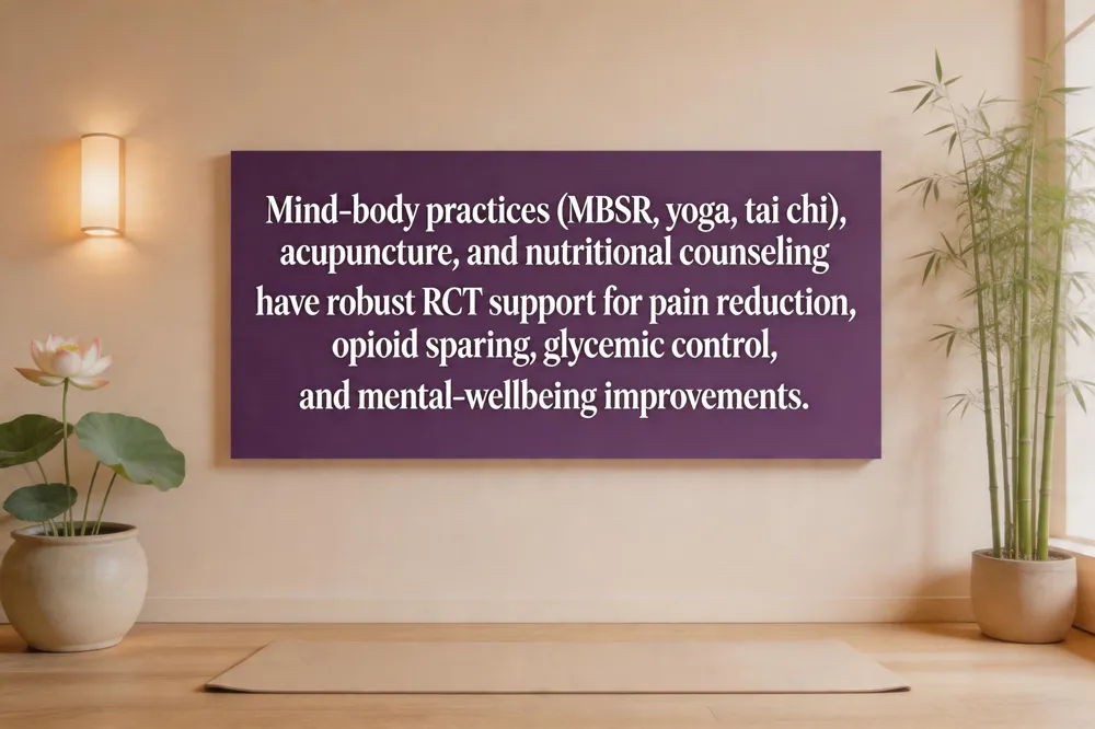Integrative health bridges conventional medicine with evidence‑based holistic practices, offering patient‑centered, personalized care. Robust research—including randomized trials and systematic reviews—demonstrates that mindfulness‑based stress reduction , yoga, acupuncture, and nutritional counseling can lower pain scores, reduce opioid use, improve glycemic control, and enhance mental well‑being when combined with standard treatments.