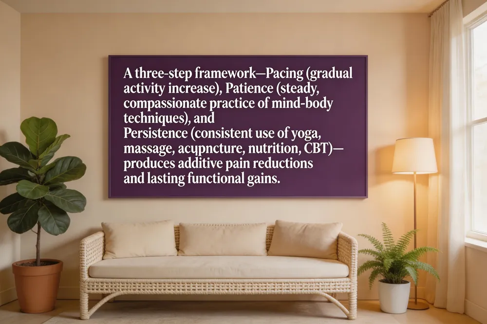 Persistence is the commitment to keep practicing healthy habits day after day. Integrative strategies—regular gentle yoga or tai chi, therapeutic massage, acupuncture, anti‑inflammatory nutrition, and cognitive‑behavioral therapy—work best when applied consistently. A personalized plan, co‑created with a multidisciplinary team, ensures that each modality targets a different pain mechanism, creating additive or synergistic effects.