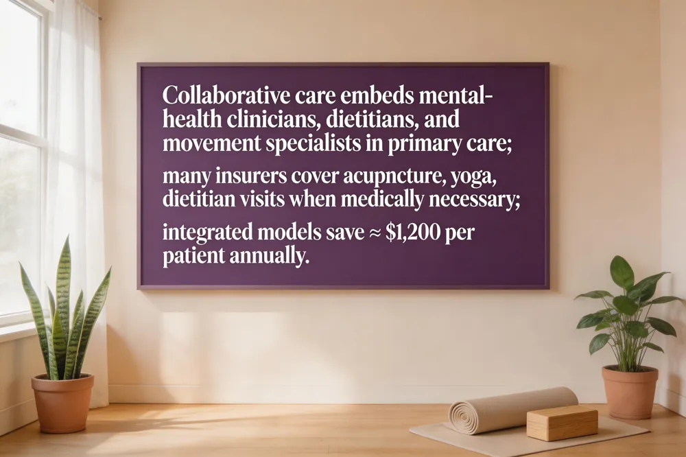 Many insurers now cover evidence‑based integrative services—such as acupuncture, yoga therapy, and dietitian visits—when a qualified provider codes the encounter and a physician’s referral establishes medical necessity.