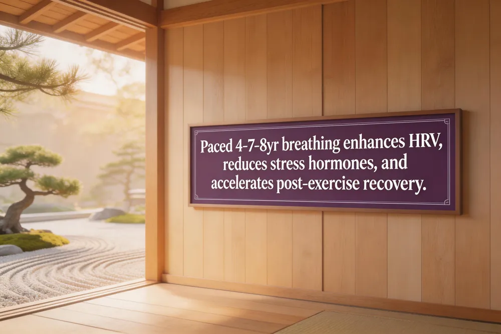 Specific techniques – 4‑7‑8 (inhale 4‑sec, hold 7‑sec, exhale 8‑sec) promotes deep relaxation; box breathing (4‑4‑4‑4) builds HRV and focus; diaphragmatic breathing improves oxygen exchange and core stability.