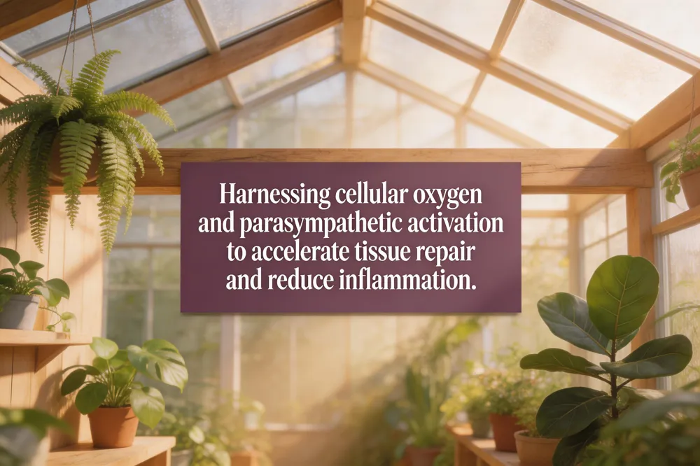 Breathing supplies the oxygen needed for cellular respiration, turning glucose into ATP that fuels muscle repair and curbs inflammation. Diaphragmatic (deep belly) breathing expands the lower lungs, increasing oxygen uptake and decreasing tension in the neck and shoulders. By lengthening the exhale, slow breath activates the parasympathetic nervous system, lowering heart rate and stress hormones, which supports healing and sleep quality.