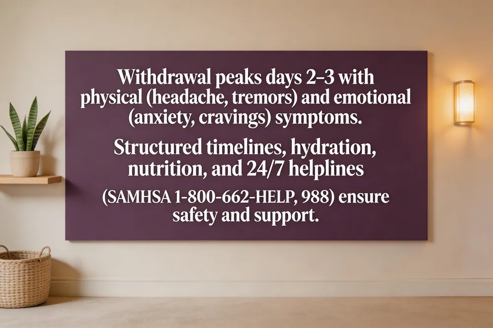 Withdrawal typically eases after the first week, with physical symptoms receding and mental clarity returning. A structured timeline helps patients anticipate changes and plan coping strategies such as hydration, nutrition, mindfulness or yoga.