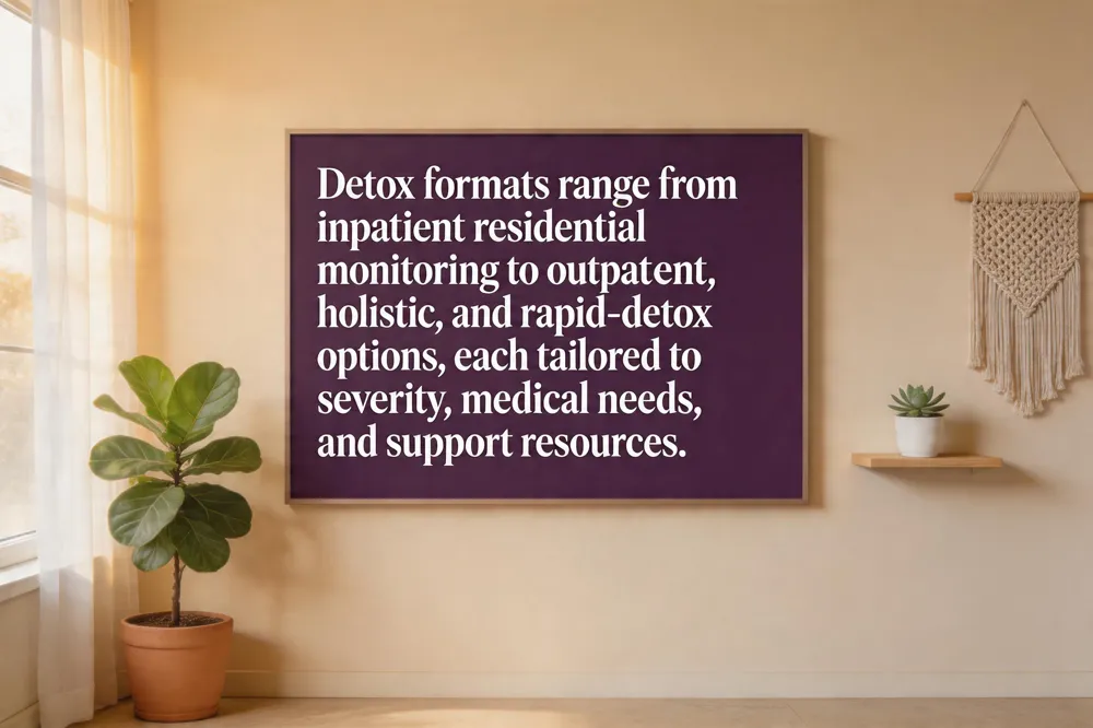 Detoxification programs come in several formats to match the severity of substance use, medical history, and personal support needs. Medical or medically supervised detox provides 24‑hour clinical monitoring and medication‑assisted treatment for high‑risk withdrawals such as alcohol, opioids, and benzodiazepines. Inpatient (residential) detox requires a stay in a licensed facility, offering continuous vital‑sign monitoring, rapid‑acting medications (e.g., benzodiazepines, buprenorphine), and a structured, trigger‑free environment; it is recommended for severe withdrawal risk, co‑occurring medical conditions, or an unstable home setting. Outpatient detox lets individuals live at home while attending scheduled clinic or telehealth visits, making it suitable for mild‑to‑moderate withdrawal when a strong support network and stable housing are present; patients receive medication‑assisted treatment, counseling, and regular check‑ins. Holistic and rapid‑detox options add mind‑body therapies—nutrition counseling, yoga, mindfulness, acupuncture—into the medical framework, and rapid detox (accelerated medication protocols) can be considered only under strict medical supervision for those who cannot commit to longer‑term residential care. Across all settings, SAMHSA’s 24/7 helpline (1‑800‑662‑HELP) can connect individuals to local programs, and comprehensive after‑care plans—including counseling, twelve‑step groups, and relapse‑prevention strategies—are essential for sustained recovery.