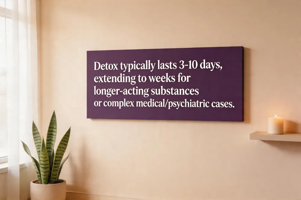 Detox is the first, medically‑supervised step in recovery, and its length varies widely. Standard duration ranges are typically three to ten days for most substances when a short‑acting drug such as alcohol or an opioid is involved. Longer‑acting opioids, benzodiazepines, or severe alcohol dependence may require ten days or several weeks of tapering to avoid complications like seizures or delirium tremens.