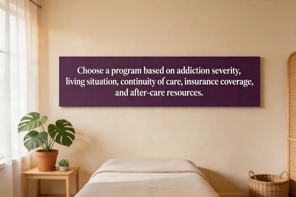Consider the severity of the addiction in relation to daily responsibilities. Severe dependence, co‑occurring medical or psychiatric conditions, or an unstable home environment usually warrants inpatient detox with 24‑hour monitoring and rapid‑acting medications (e.g., benzodiazepines for alcohol withdrawal). Milder dependence, a stable living situation, and work or school commitments often fit an outpatient model that offers flexibility while still providing scheduled medication‑assisted treatment and counseling.