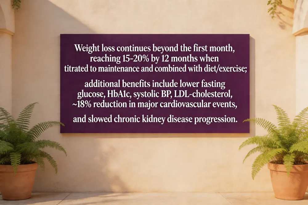 Beyond the scale, GLP‑1 therapy delivers durable metabolic gains: it improves fasting glucose and HbA1c, lowers systolic blood pressure, and reduces LDL‑cholesterol. Large cardiovascular outcome trials have shown an ~18 % relative risk reduction for heart attacks and strokes, while kidney‑protective data indicate slower progression of chronic kidney disease and fewer cases of end‑stage renal failure. These organ‑level benefits persist while the medication is continued; discontinuation can erode protection within months.