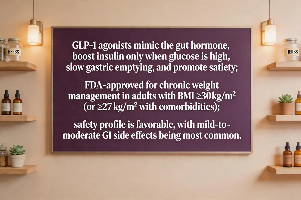 Is GLP‑1 safe for weight loss?: Yes, when monitored by a healthcare team; common GI effects are manageable, and serious events are rare.