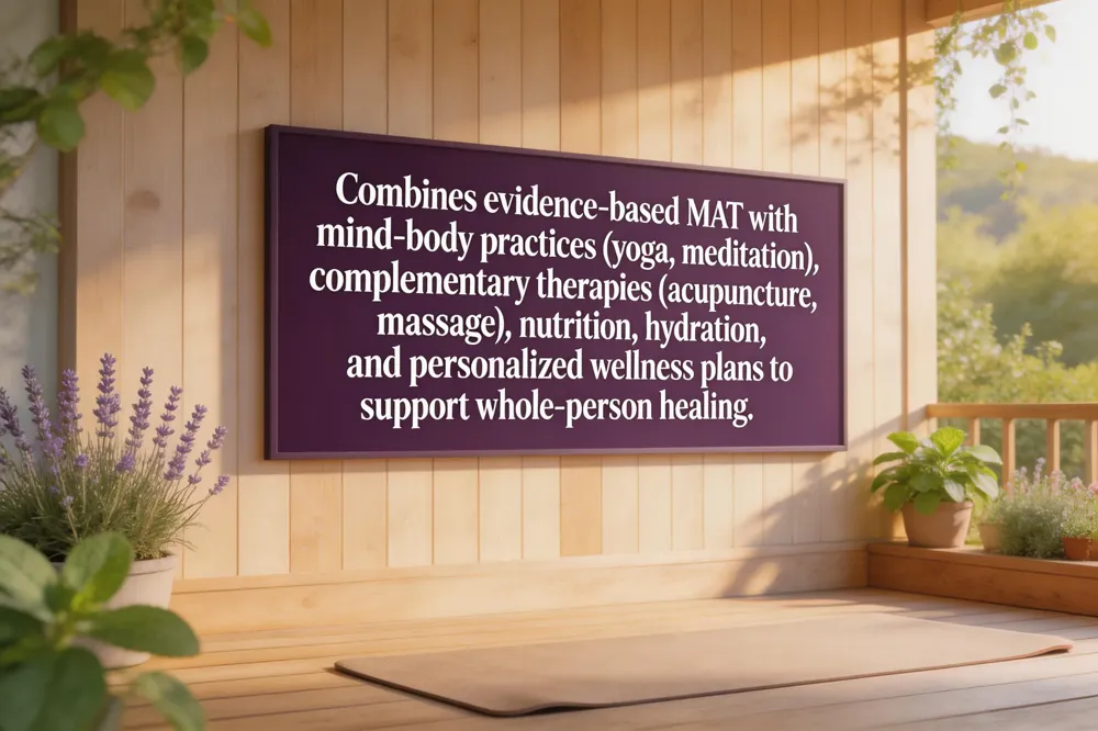 Mind‑body practices and complementary therapies – Gentle yoga, mindfulness meditation, breathwork, and guided imagery calm the nervous system, lower cortisol, and diminish cravings. Acupuncture, massage, and aromatherapy are frequently added to ease muscle tension, reduce nausea, and improve sleep without adding sedative drugs.