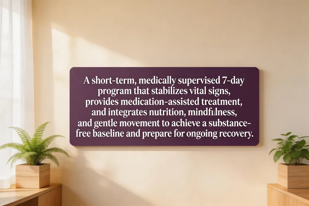 A 7‑day detox rehab is a short‑term, medically supervised program designed to help the body safely eliminate alcohol or other substances and their toxins. During the week‑long stay patients receive around‑the‑clock medical monitoring to manage withdrawal, prevent complications such as delirium tremens, and support hydration and nutrition. The program blends evidence‑based medical care with integrative therapies—nutrition counseling, mindfulness, gentle movement, and personalized wellness plans—to promote physical and mental stabilization. By the end of seven days most participants achieve a substance‑free baseline, reducing cravings and preparing them for the next phase of recovery, which may include counseling, behavioral therapy, and ongoing holistic support.
