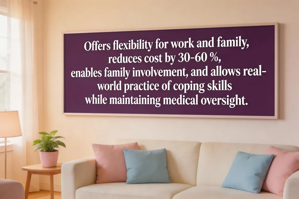 Potential disadvantages of outpatient care – The home environment can introduce distractions, trigger exposure, and limited continuous medical oversight compared with inpatient settings. Patients may also struggle with maintaining strict medication schedules and attending frequent appointments while juggling work or family responsibilities.