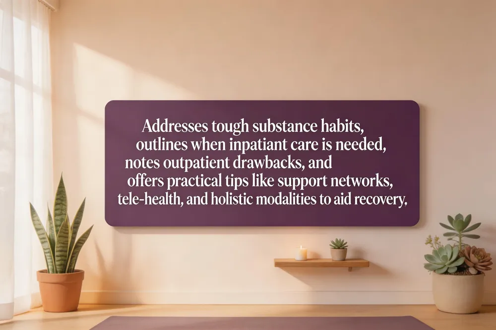 Practical tips include establishing a reliable support network, using tele‑health check‑ins for rapid crisis response, and integrating holistic modalities—nutrition counseling, mindfulness, and acupuncture to reduce stress and improve overall well‑being during the outpatient detox journey.